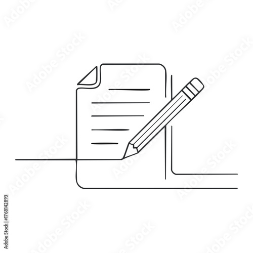Minimalist Drawing of Pencil on Paper with Lines for Text; Simple and Clean Design for Writing, Notes, or Records