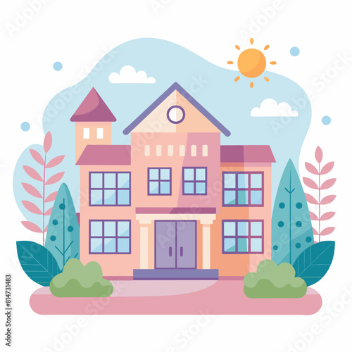 Minimalist educational building, crafted in an adorable doodle style, Generative AI