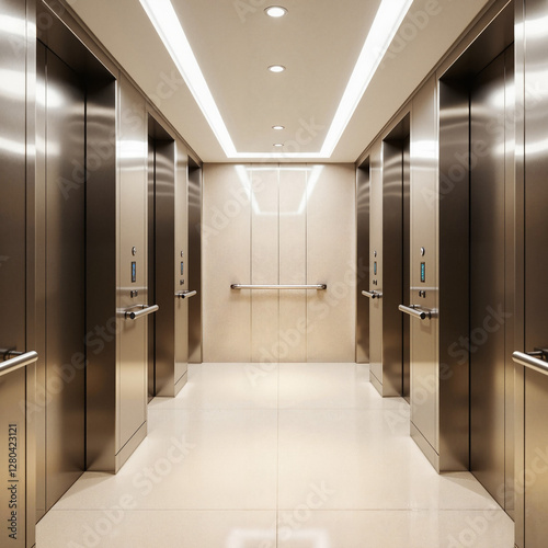 Minimalist elevator interior with soft lighting, modern business aesthetic