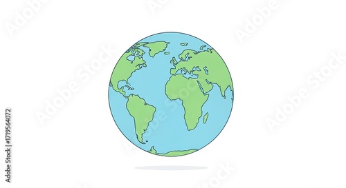 Minimalist flat design illustration of a world globe, pastel blue and green, isolated on white