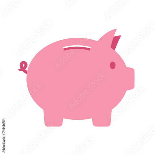 Minimalist Flat Design Pink Piggy Bank Vector Illustration for Money Saving and Financial Growth Concepts