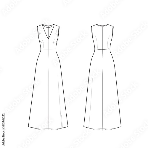 Minimalist Flat Sketch – Sleeveless A-Line Maxi Dress