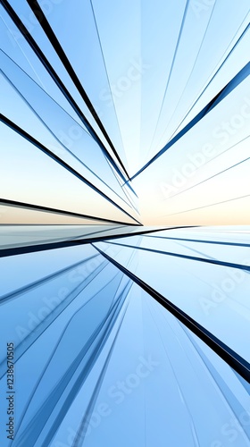 Minimalist glass structure, geometric reflections, 3D illustration