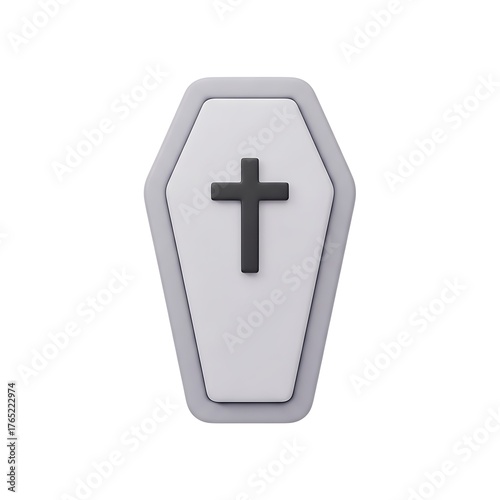 Minimalist Gray Coffin with Black Cross on White Background