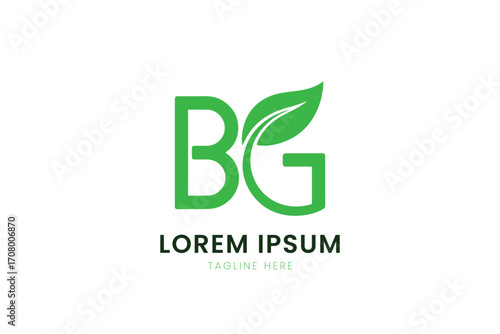 Minimalist green bg logo with leaf detail perfect for eco brands and nature companies
