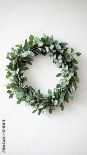 Minimalist Green Foliage Wreath on White Wall - Perfect for Home Decor and Seasonal Celebrations