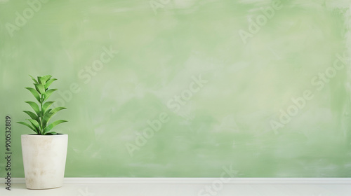 Minimalist Green Plant in White Pot Against Light Green Wall, Fresh Modern Home Decor Background for Nature-Inspired Design and Eco-Friendly Living Spaces
