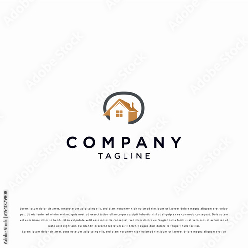 Minimalist House and Speech Bubble Logo in Flat Design on White Background