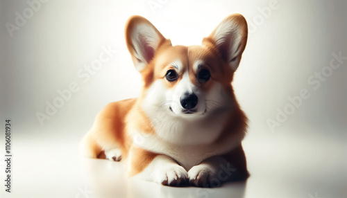 Minimalist illustration with light background, space for text and corgi