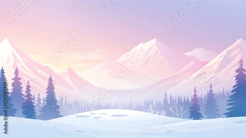 Minimalist Landscape with Pastel Sunrise and Snow-Capped Mountains