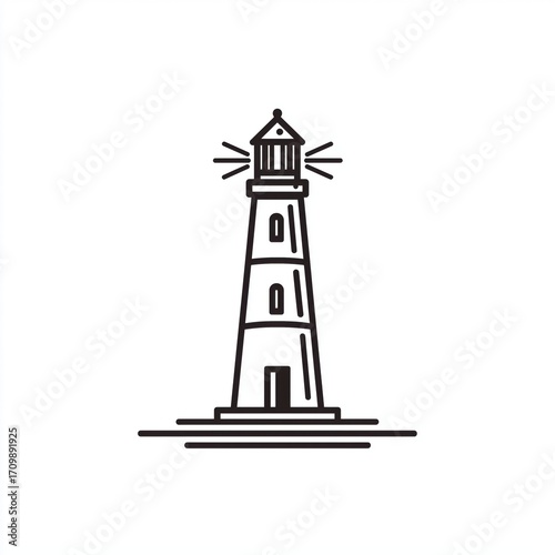 Minimalist lighthouse illustration shining bright, perfect for nautical themes and coastal designs, ideal for logos, prints, and seaside promotions