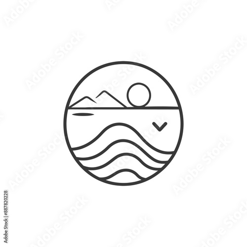 Minimalist Line Art: Coastal Sunset in Circular Frame