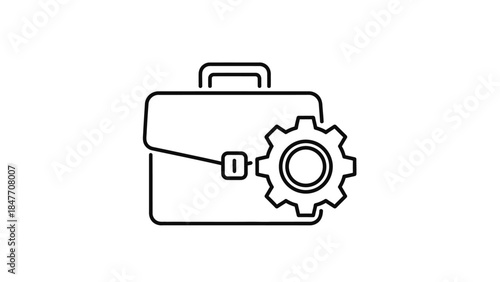 Minimalist line art depiction of a business briefcase with gear symbol representing professional