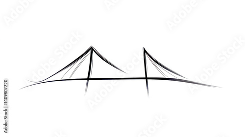Minimalist line art depiction of a suspension bridge spanning a body of water