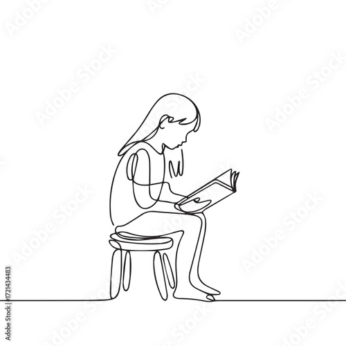 Minimalist Line Art of a Child Studying
