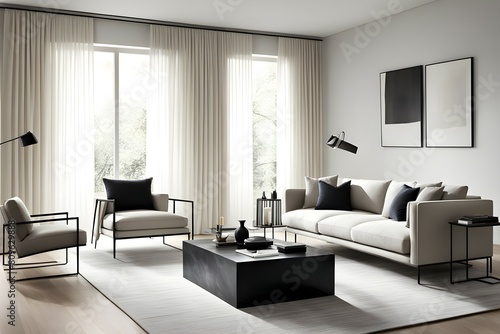 Minimalist living room. furniture has a modern and minimalist design, with a sofa