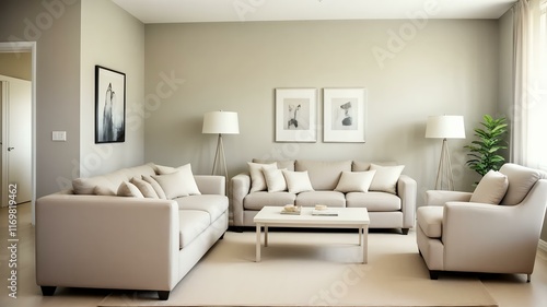 Minimalist Living Room with Beige Furniture and Modern Art
