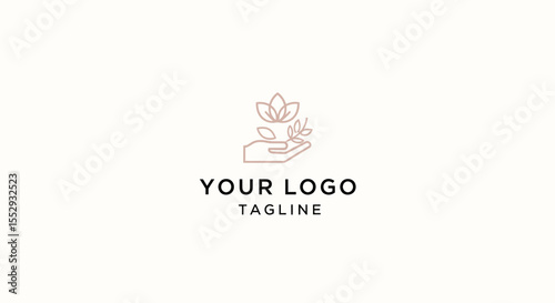 Minimalist logo design featuring a hand holding a delicate flower symbolizing care and growth