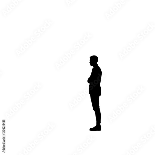 Minimalist Lone Figure Silhouette in Contemplation on White Background