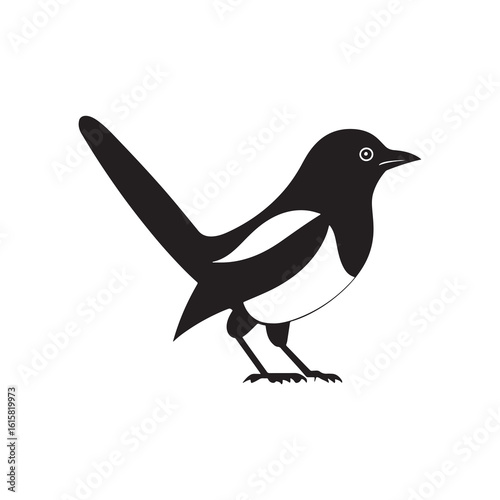 Minimalist Magpie Bird Silhouette Vector Illustration