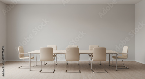 Minimalist Modern Conference Room with Beige Chairs and Light Wood Table