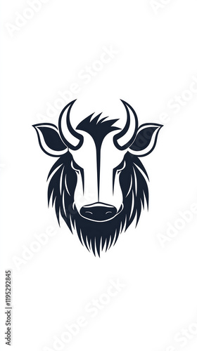 minimalist monochrome vector graphic depicting a stylized bulls head The design features sharp horns a textured mane and a simple facial structure Its suitable for logo use