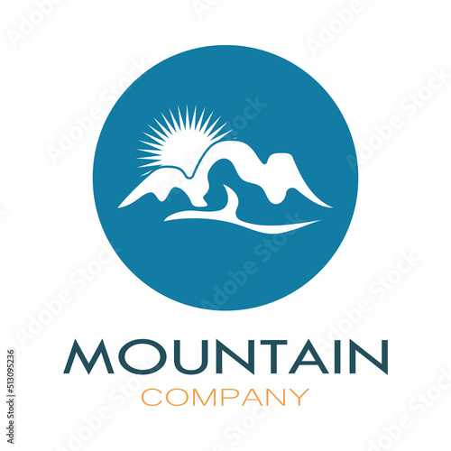 Minimalist mountain and sun logo design in flat colors packed with modern concepts vector illustration