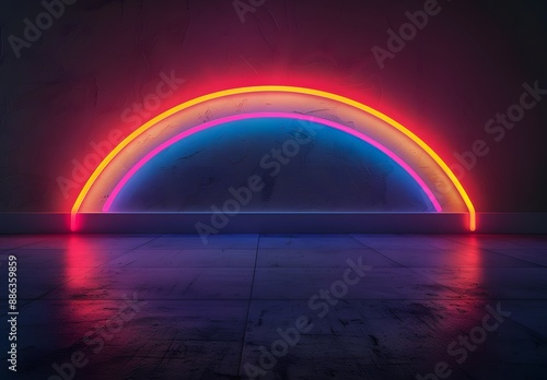 Minimalist Neon Rainbow Arch in Dark Room