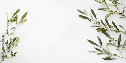 Minimalist Olive Branch on White Background: Natural Green Leaves for Wellness, Spa, Wedding Invitations, Mediterranean Cuisine, and Eco-Friendly Design