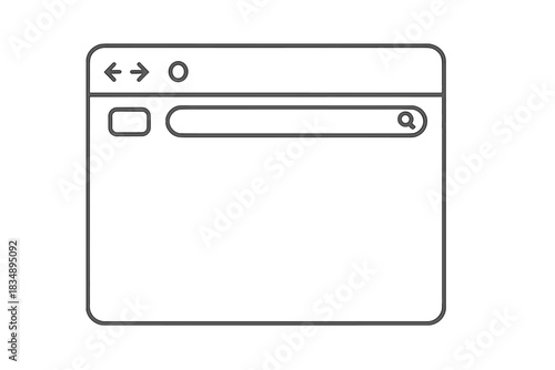Minimalist outline of a generic web browser window frame with search bar and navigation buttons