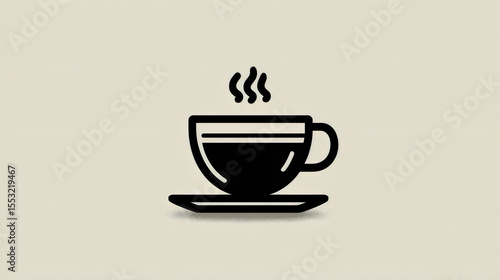 Minimalist outline of a latte cup with steam rising, symbolizing warmth and comfort in a cozy setting