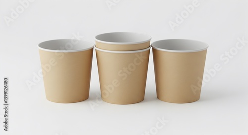 Minimalist Paper Cups on White Background for Beverage Consumption and Design Elements