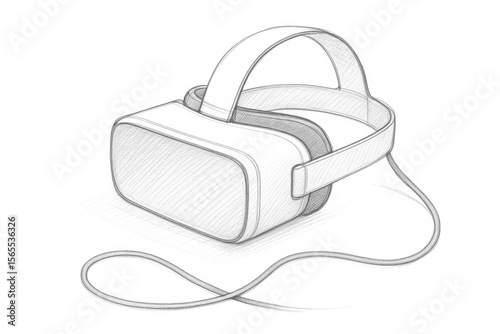 Minimalist Pencil Sketch of Virtual Reality Goggles with Cable