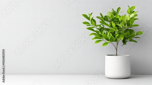 Minimalist potted plant on a plain wall