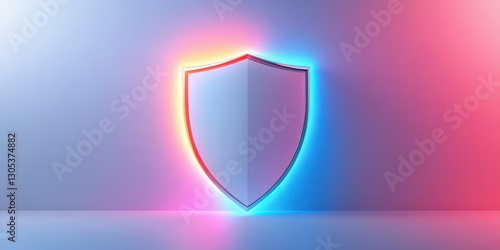 Minimalist shield design with neon glow effects in a modern abstract background representing protection and security concepts