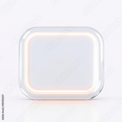 Minimalist square electronic device with soft glowing orange light border isolated on white background