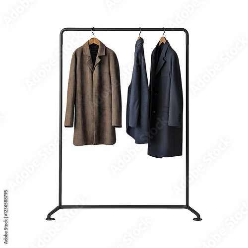 Minimalist Standing Coat Rack with Coats Hanging Isolated on Transparent Background
