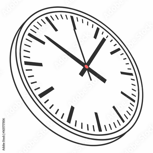Minimalist wall clock with black hands and markers on white