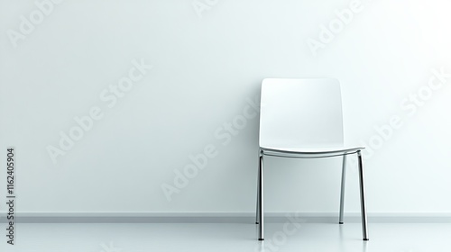 Minimalist white chair against blank wall.