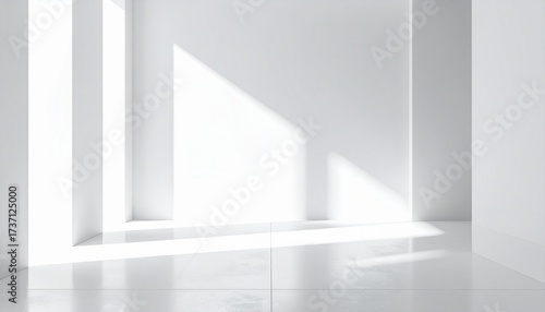 Minimalist White Interior with Geometric Light Shadows – Clean Modern Space for Product Display, Luxury Branding, or Wellness Concept
