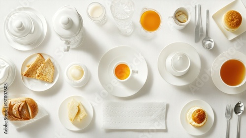 Minimalist White Table Setting for Breakfast