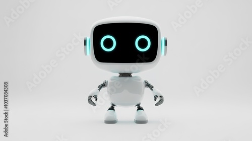 Minimalistic 3D White Robot Helper with Monitor Eyes