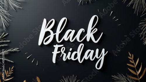 Minimalistic dark background, bold Black Friday inscription illuminated with a subtle glow effect, capturing a sleek and modern promotional vibe
