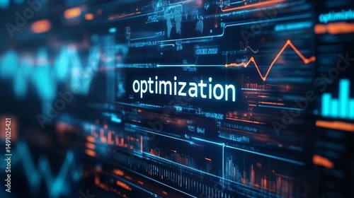 Minimalistic growth chart with upward arrow and the word "optimization", symbolizing progress, efficiency, and business improvement in a clean visual style.
