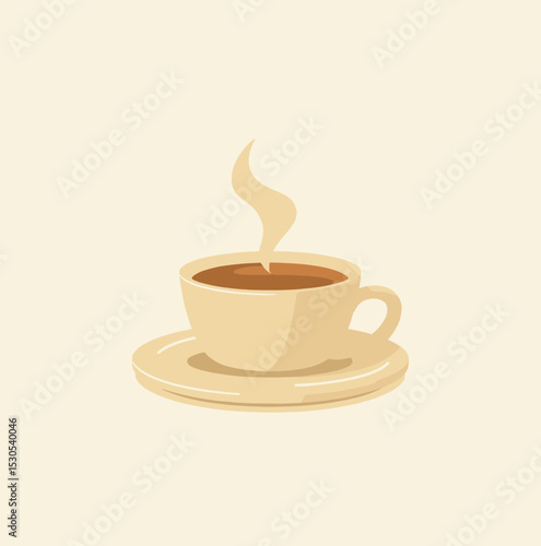 Minimalistic illustration of a cup of hot coffee with steam on a light background