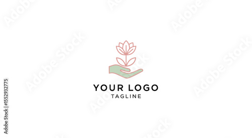 Minimalistic logo design featuring a hand holding a blooming flower symbolizing growth and care