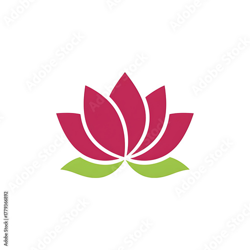 Minimalistic Lotus Flower Logo with Pink Petals and Green Leaves
