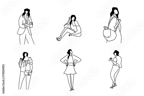 Minimalistic, modern and stylish fashion ladies set. Vector illustration in hand drawn outline doodle simple contour style isolated on white background. For wrapping, presentation, poster, poster.