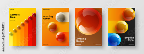 Minimalistic realistic spheres brochure concept collection. Original handbill design vector layout composition.