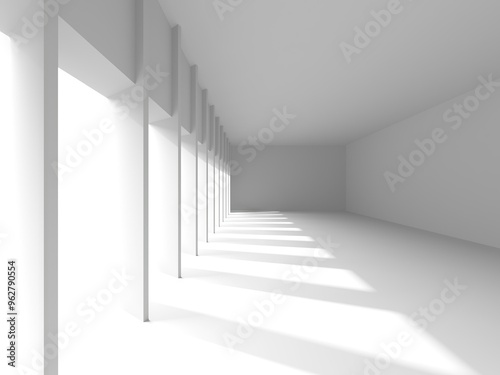 Minimalistic room space. White clean empty architecture interior